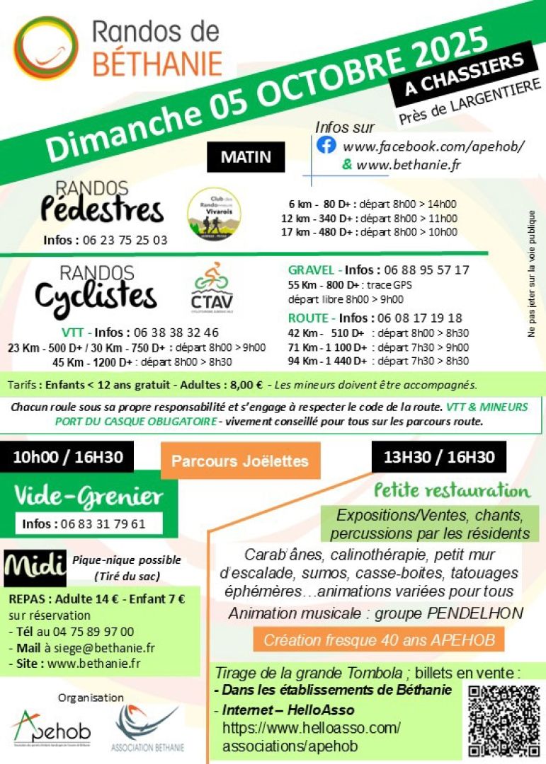 Au départ de la commune de Chassiers, les Randonnées de Béthanie proposent des parcours de VTT, Vélo de route et Gravel ainsi que des randonnées pédestres. Organisées chaque année par le club le premier dimanche d'octobre en partenariat avec l’APEHOB (Association des Parents d’Enfants Handicapés de l’Œuvre de Béthanie) ces randonnées ouvertes à tous constituent un évènement inscrit dans l’histoire du club et qui mobilise de nombreux bénévoles du CTAV.